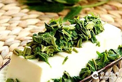 Green Tea Minced Meat Tofu: Mix 100 grams of minced meat with seasonings, dice an appropriate amount of mushrooms and bamboo shoots, stir-fry until cooked, and let cool. Spread evenly over 400 grams of cooked tofu, then sprinkle 3 grams of ground green tea on the surface. This dish is refreshing and nutritious.