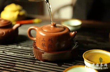 Pour boiling water into the pot again. During the pouring process, the spout "nods" three times, which is called "Phoenix nodding three times," showing respect to guests. "Spring breeze brushing the face": The water should be higher than the pot mouth, and use the lid to brush away tea dust.