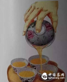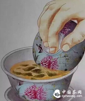 Hold the Gaiwan with your index finger, middle finger, and thumb. Gently press the center of the lid with your index finger, while your middle finger and thumb grasp the rim of the cup. Lift the Gaiwan, tilting it slightly forward, and slowly pour the tea into small teacups. During the Qing Dynasty, there was also a method of drinking directly from the Gaiwan without using small teacups.