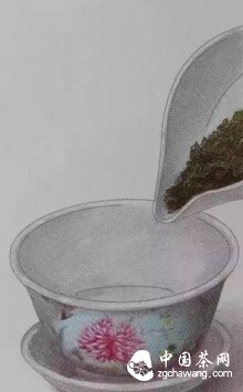 Place an appropriate amount of tea leaves into the lidded cup.