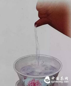 Pour boiling water into the Gaiwan, then pour the water from the Gaiwan into small teacups. The purpose is to keep the Gaiwan and teacups clean and warm during use.