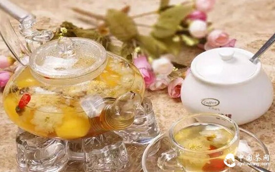 When brewing jasmine tea with boiling water, add five or six white chrysanthemum flowers. You can also add a few wolfberries (goji berries), which also nourish the liver and kidneys, to strengthen the eyesight-improving effect of the floral tea.