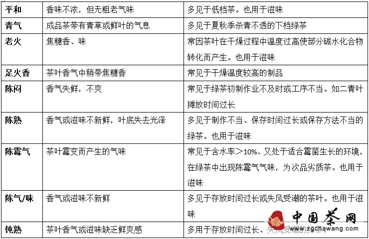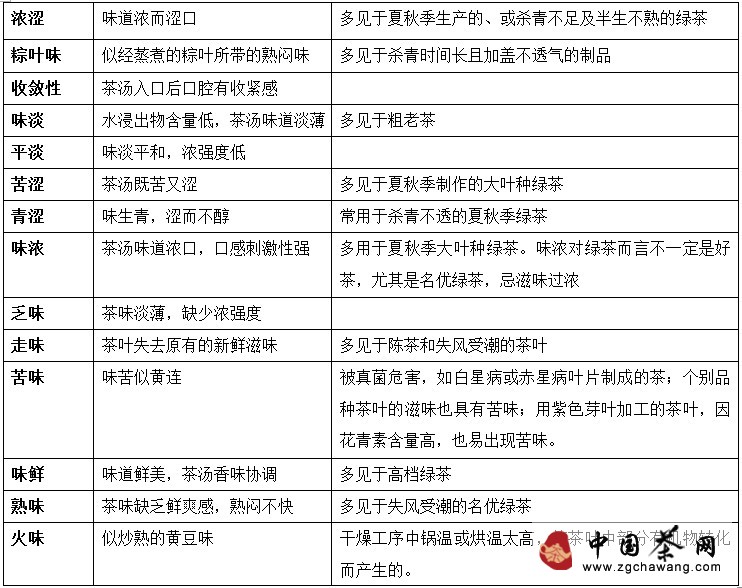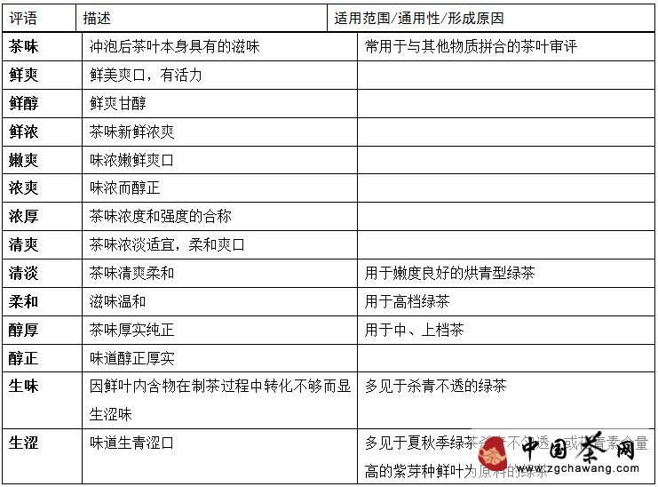 4. Common evaluation terms for tasting green tea flavor