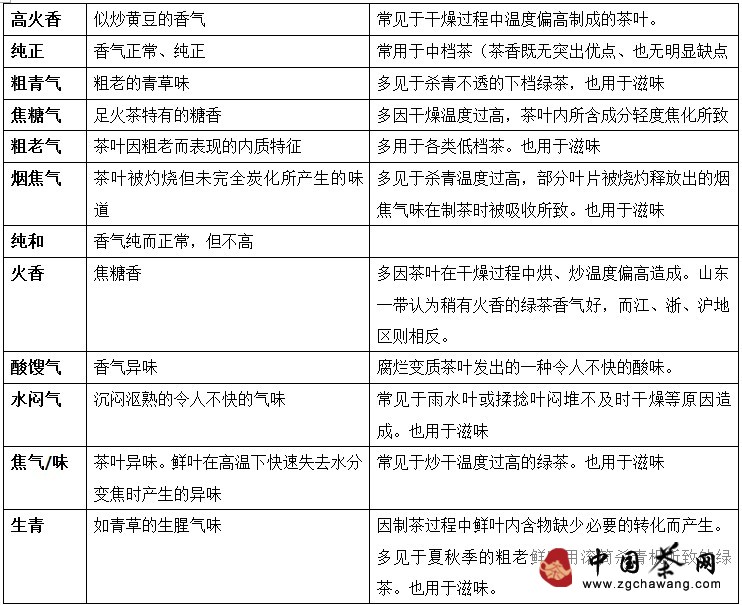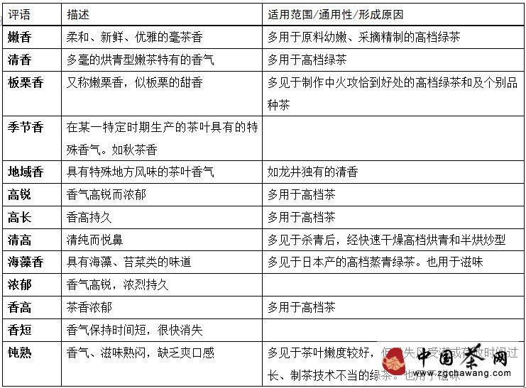 3. Common communication terms for identifying green tea aroma