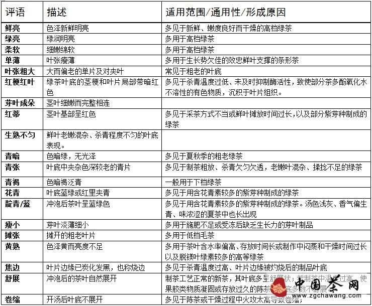 5. Common communication terms for observing brewed tea leaves: