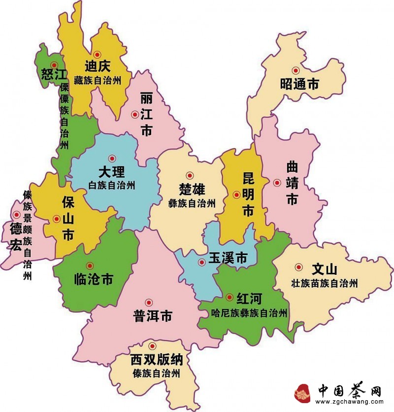Yunnan Province has a total of 16 prefectures, cities, and autonomous prefectures, and 129 counties and county-level cities (districts). Among them, there are 8 ethnic autonomous prefectures: Chuxiong Yi Autonomous Prefecture, Honghe Hani and Yi Autonomous Prefecture, Wenshan Zhuang and Miao Autonomous Prefecture, Xishuangbanna Dai Autonomous Prefecture, Dali Bai Autonomous Prefecture, Dehong Dai and Jingpo Autonomous Prefecture, Nujiang Lisu Autonomous Prefecture, and Diqing Tibetan Autonomous Prefecture. There are also 8 prefecture-level cities: Kunming, Zhaotong, Baoshan, Lijiang, Lincang, Pu'er (formerly Simao), Qujing, and Yuxi.