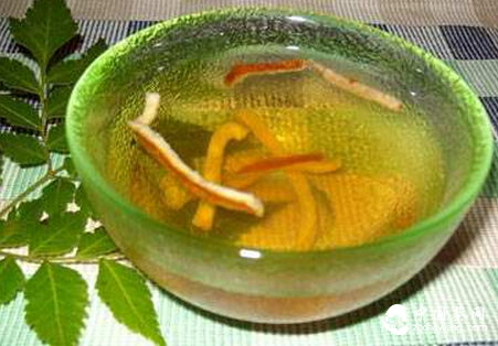 Take 10 grams of dried tangerine peel, wash it, tear it into small pieces, place it in a teacup, pour in boiling water, cover the cup, and let it steep for about 10 minutes. It not only relieves summer heat but also soothes coughs, reduces phlegm, and strengthens the stomach.