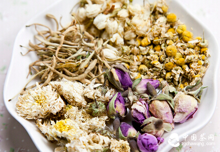 Take appropriate amounts of honeysuckle, chrysanthemum, pagoda tree flower, frangipani flower, and kapok flower. Place them in a cup and steep with boiling water. It can clear heat and detoxify, promote fluid production to quench thirst, remove dampness, and strengthen the stomach.