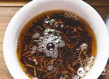 Some people compare it to the scum produced when food is boiled and try to "skim" it off when making tea. This is actually a misunderstanding and a waste.