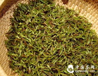 The dry tea leaves have a dull, withered color, which becomes more pronounced with increasing age.