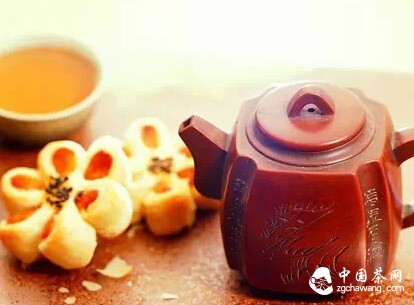 3. Place rock sugar in a teapot with a strainer on top. Pour the brewed tea into the pot through the strainer and stir until the sugar dissolves.