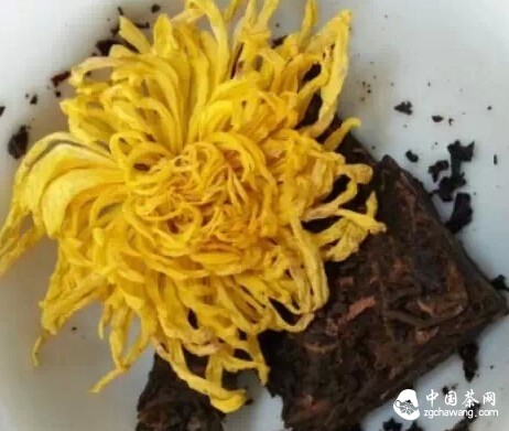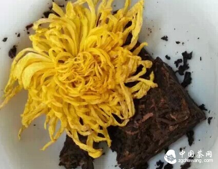 One golden silk chrysanthemum flower, 8-9 grams of ripe Pu-erh.