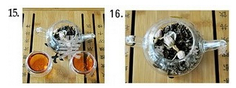 12-15. Pour the tea: Pour the brewed tea into a fairness cup, pouring low and quickly to prevent the aroma from escaping. Then divide the tea from the fairness cup into small tasting cups, ready to appreciate the tea’s fragrance and observe its appearance.